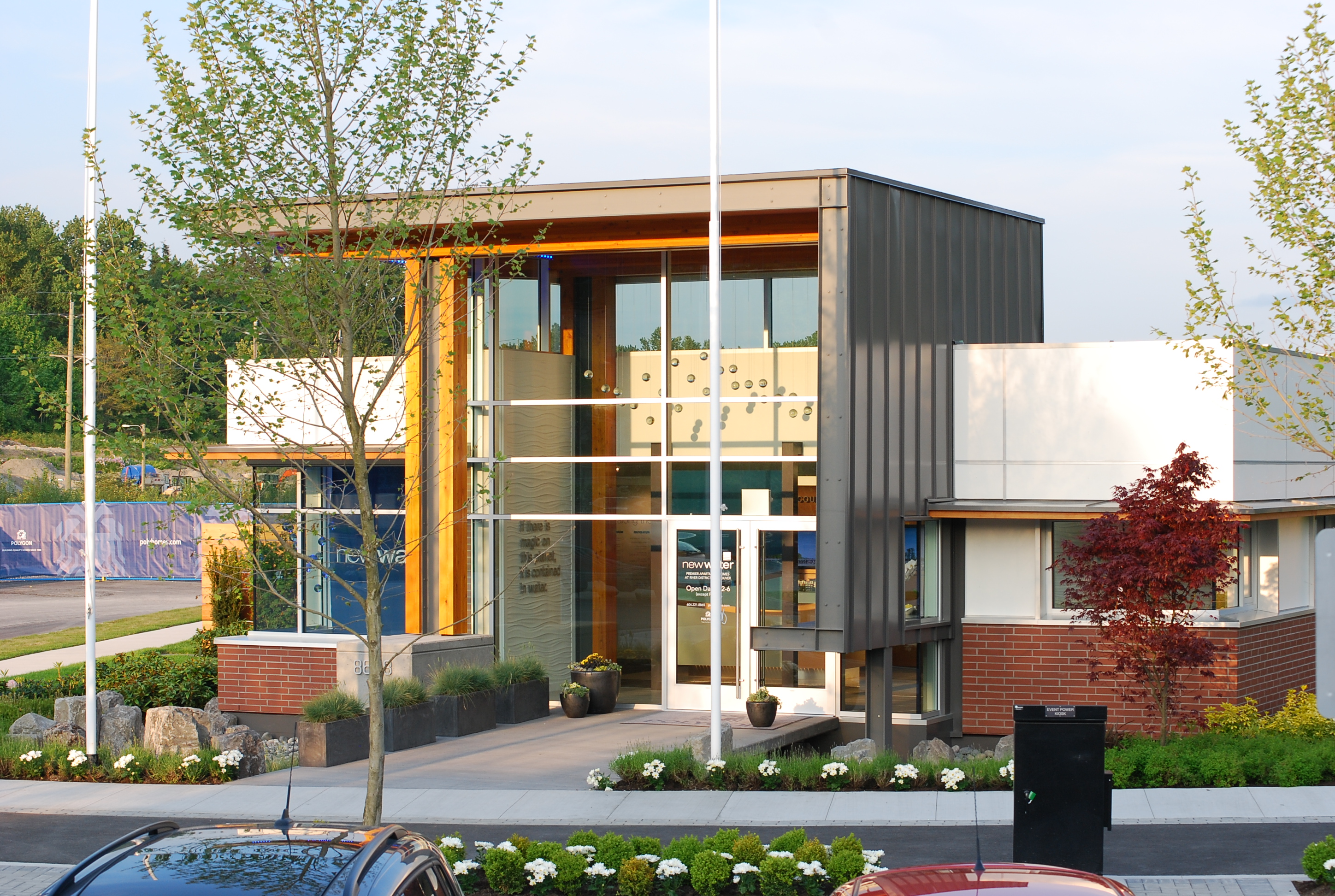 Originally built as the sales center for the River District development, this pavilion introduced the architectural character of the emerging waterfront community. A folded metal entrance canopy and exposed heavy timber framing evoke the area’s industrial past while setting a contemporary tone for future buildings. Located along the Fraser River, the structure blends robust materials with a bold form, symbolizing the transformation of the site from working waterfront to vibrant residential hub. Though temporary in nature, the pavilion established a strong architectural identity for the new neighborhood.